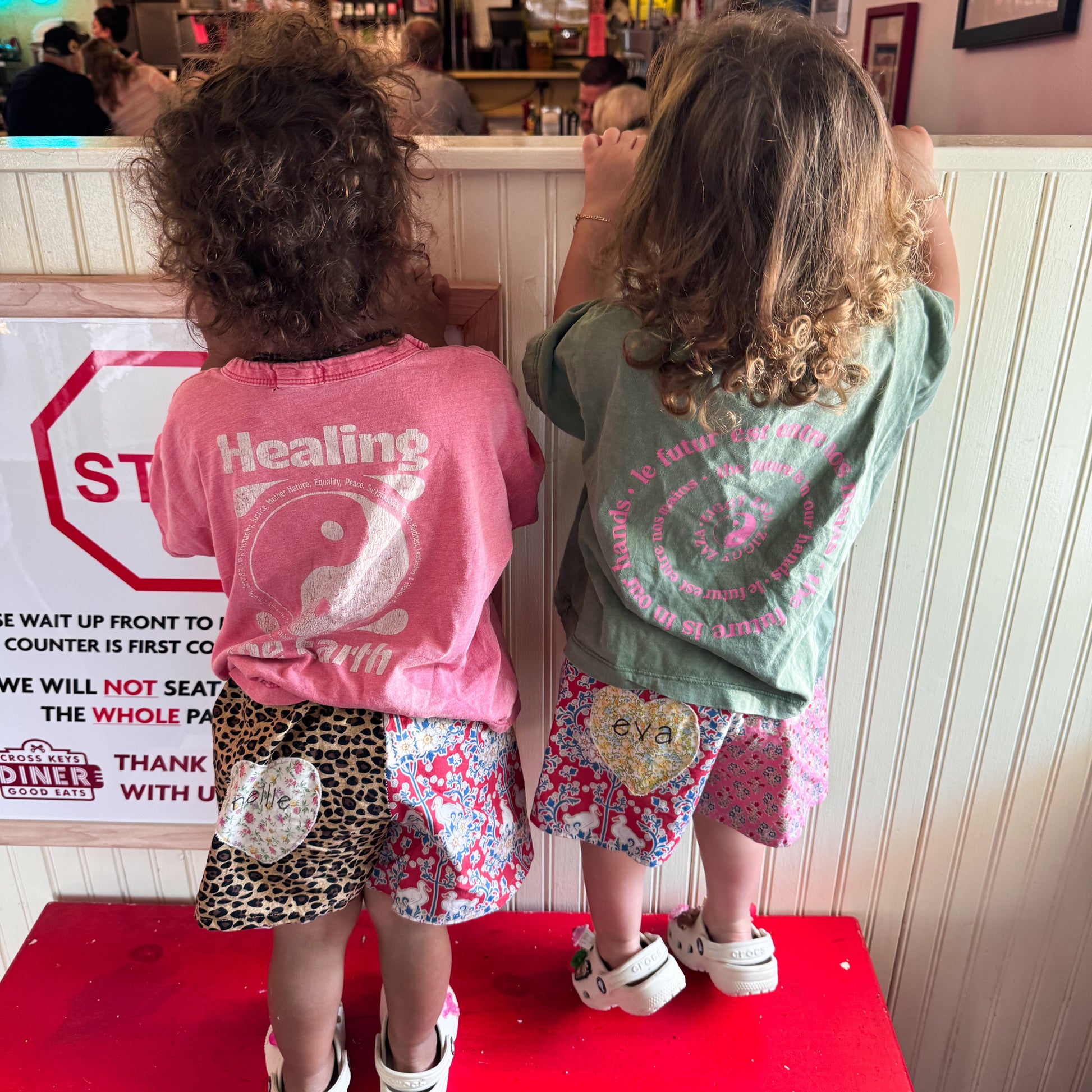 These playful Patchwork Shorts by Mischa & Lola are lovingly handmade from soft, natural fibers. Each pair showcases colorful patchwork of your choosing, and you can add a personalized name patch to make them truly yours. Embrace comfort and creativity with these unique shorts—please allow 2-3 weeks for your custom creation to be ready!